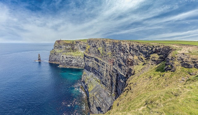 One cannot travel to Ireland without seeing the Cliffs of Moher. The best time to see them is obviously in summer but it’s also the busiest. The Cliffs of Moher have an elevation of more than 100 meters above the sea. The highest point is a vertical wall that is 200 meters above sea level.