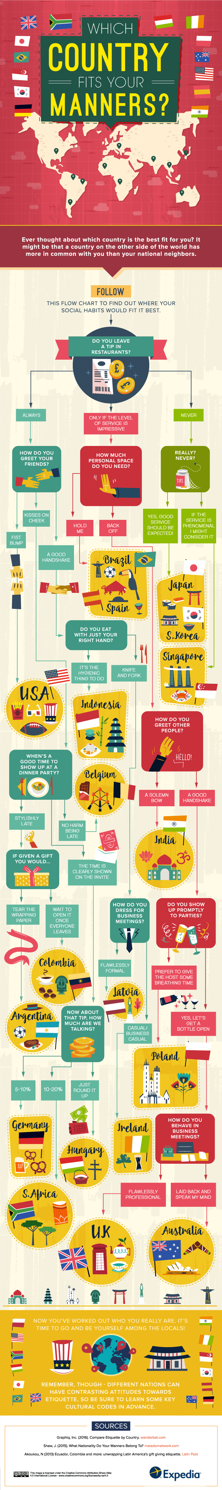 Through the infographic, you are asked questions about your manners and based on the answers you’ll be lead to the country best suited for you. Take a look and let us know in the comments which country fits you.