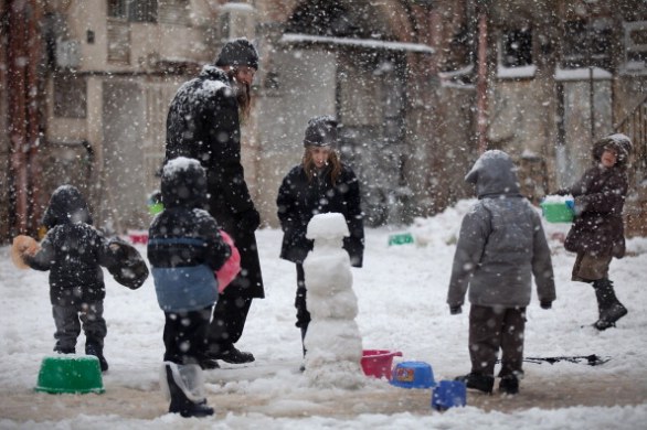 Children playing with snow still in ultra-Orthodox neighborhood of Mea Shearim (January 10).