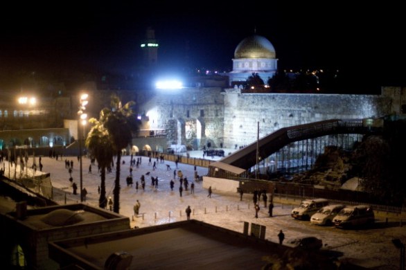 Night snowfall near the Western Wall (January 9).