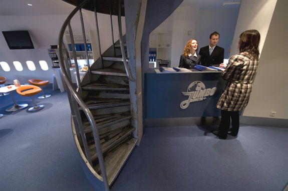 After the Windsor Hotel in an airplane on the reef in Costa Rica here is a similar arrangement in Europe: the Jumbo Stay, it is a hotel and hostel together in Arlanda Airport in Stockholm. The Jumbo Jet in question always remains firmly planted on the ground, but offers rooms that can accommodate one to three people (some with private bath that goes without saying, has small, know!) And an area with castle dorm beds for the most demanding instead the Luxury Suite is located right in the cockpit and one situated at the rear. According to financial blogs speaking about the price of a staying in a real airplane, it is impossible to afford it; for that reason grab this opportunity that is offered in Stockholm.