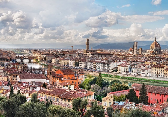 Florence, the capital city of Tuscany, is noted for its monuments, museums and art galleries. The city is brimming with culture, art and rich architecture. It is famous for its history and is an important city for Italian fashion. The city has many streets and major squares to explore, one being the Piazza della Republica situated in the city centre and home to many cafés and bourgeois palaces.