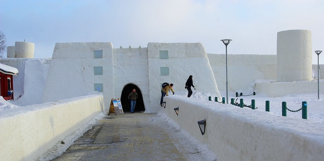 Same as with the Ice-Hotel in Sweden, the castle of Kemi in Finland takes advantage of the heavy snow in the region and the frozen water of the Baltic coast to make special bricks that shape the impressive building. The first castle was built in 1996 and was so successful that it has since risen every year in order to attract more curious tourists. It is an impressive piece of architecture designed by local artists whose shape varies each year and is illuminated with colored lights to provoke different sensations.